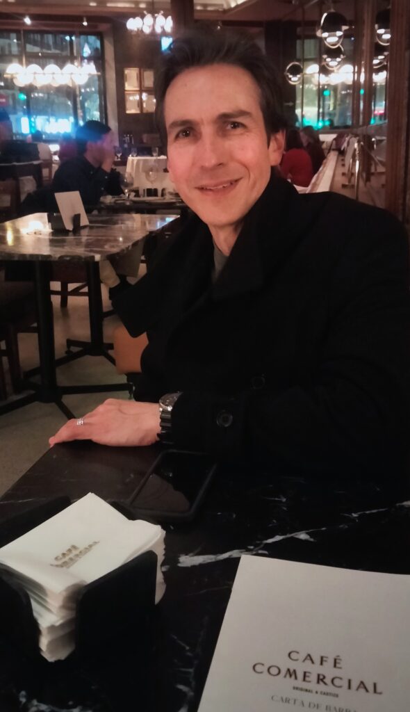 Andrés Montiel -actor de Jalisco- ha pasado unas horas por Madrid y hemos aprovechado para encontrarnos, conversar mientras paseábamos por el centro y acabar en el Café Comercial para tomar “algo”.
