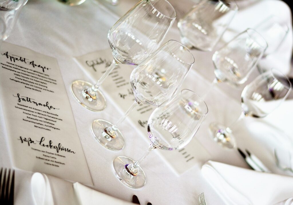 Depende del evento y la cantidad de invitados que tengan. Elija una carta variada donde pueda encontrar aves, carnes, pastas.( maricos con cuidado por las alergias). Tome en cuenta si, alguna persona es vegetariana o celiaca. El Menú puede ser confeccionado en 4 o 5 tiempos con su respectivo maridaje de vinos sugeridos. Siempre es bueno, comenzar por una copa de champagne (prosseco, cava, espumante) a 05°C y 08 °C de temperatura para la bienvenida (nos puede servir para el brindis.) Acompañado de un piqueo variado. Luego entrada, plato de fondo, postre, café o infusión.