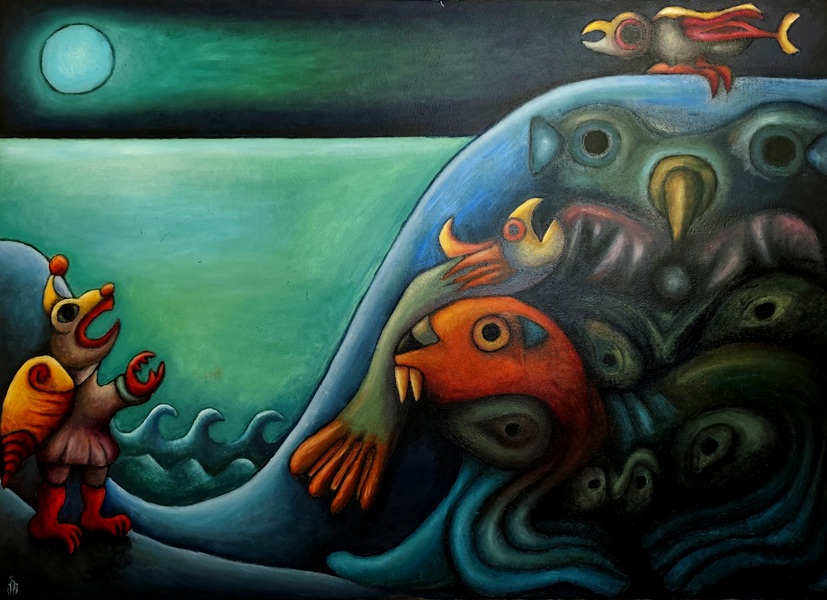 El recorrido artístico de la exposición abarca más de 45 años de trayectoria, desde los inicios del artista, quien comenzó a pintar a los ocho años, hasta la actualidad. En sus obras se evidencia una marcada influencia del surrealismo, con escenas que dialogan con el mundo de los sueños, lo simbólico y lo invisible. Destacan los colores vibrantes y composiciones que transitan entre lo místico y lo mágico.