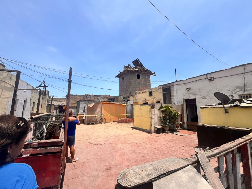 En el lugar, el personal técnico del sector Cultura verificó la caída de la cúpula de la torre, cuyos escombros impactaron sobre el techo del interior A, hacia la zona común de la quinta. Ante esta situación, recomendaron restringir el acceso a este sector, por lo que trabajadores del gobierno local procedieron al precintado del predio, a fin de evitar el ingreso de personas.