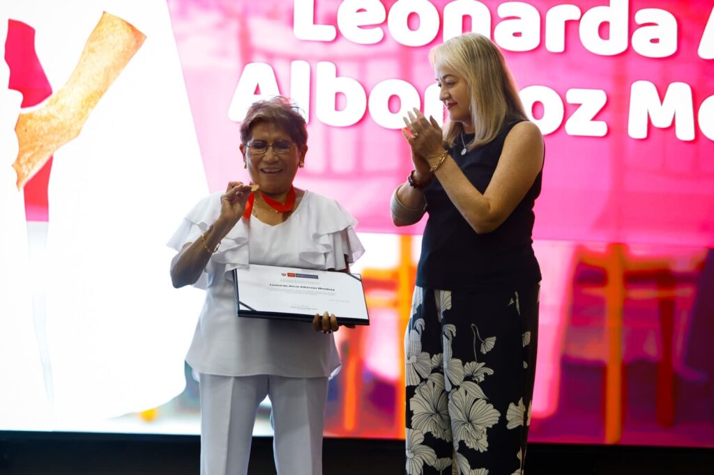 “Hoy nos reunimos para reconocer la trayectoria de la maestra Leonarda Albornoz, quien durante más de 50 años ha enseñado con dedicación a diversas generaciones los pasos de la marinera limeña, una de las expresiones más hermosas de nuestro país. Su compromiso y vocación han permitido que esta tradición, profundamente ligada a nuestra identidad cultural, continúe viva y transmitiéndose de generación en generación”, señaló la ministra.